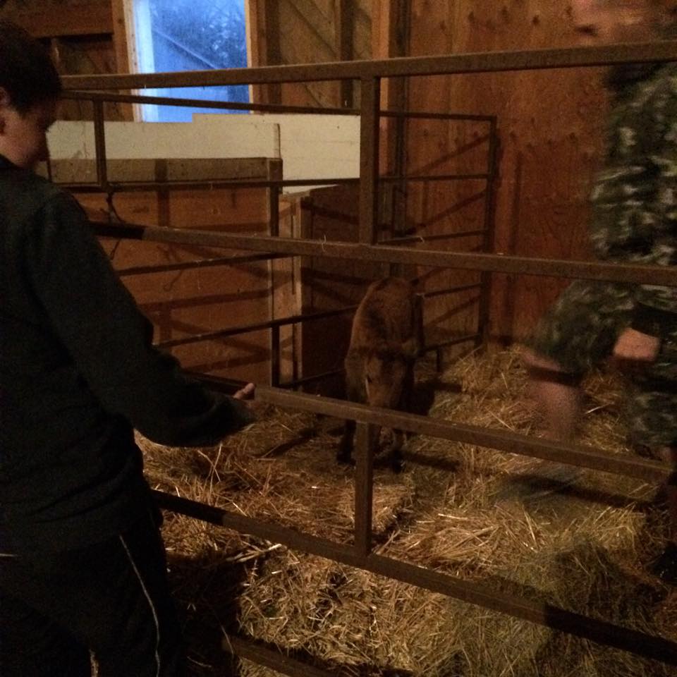 Of course my initial reaction was to find a way to keep him in my entryway in the house! Then he urinated in the back of the truck. Twice. So I was quickly brought back into reality. These are big, strong, dangerous animals and they need to be treated with caution and respect. After much discussion and weighing all our options we made a call to a friend late last night to ask if she would keep it in her barn for now. She has a soft spot for animals and we were grateful when she agreed. Discussions with the vet are ongoing and we will have to decide the safest way to handle the situation for everyone. For the time being Spike is content and warm inside his new pen and the latest report has come back that he is happily taking a bottle. (Sorry for the picture quality, in the rush last night I only had my cell phone because my camera got left at home)