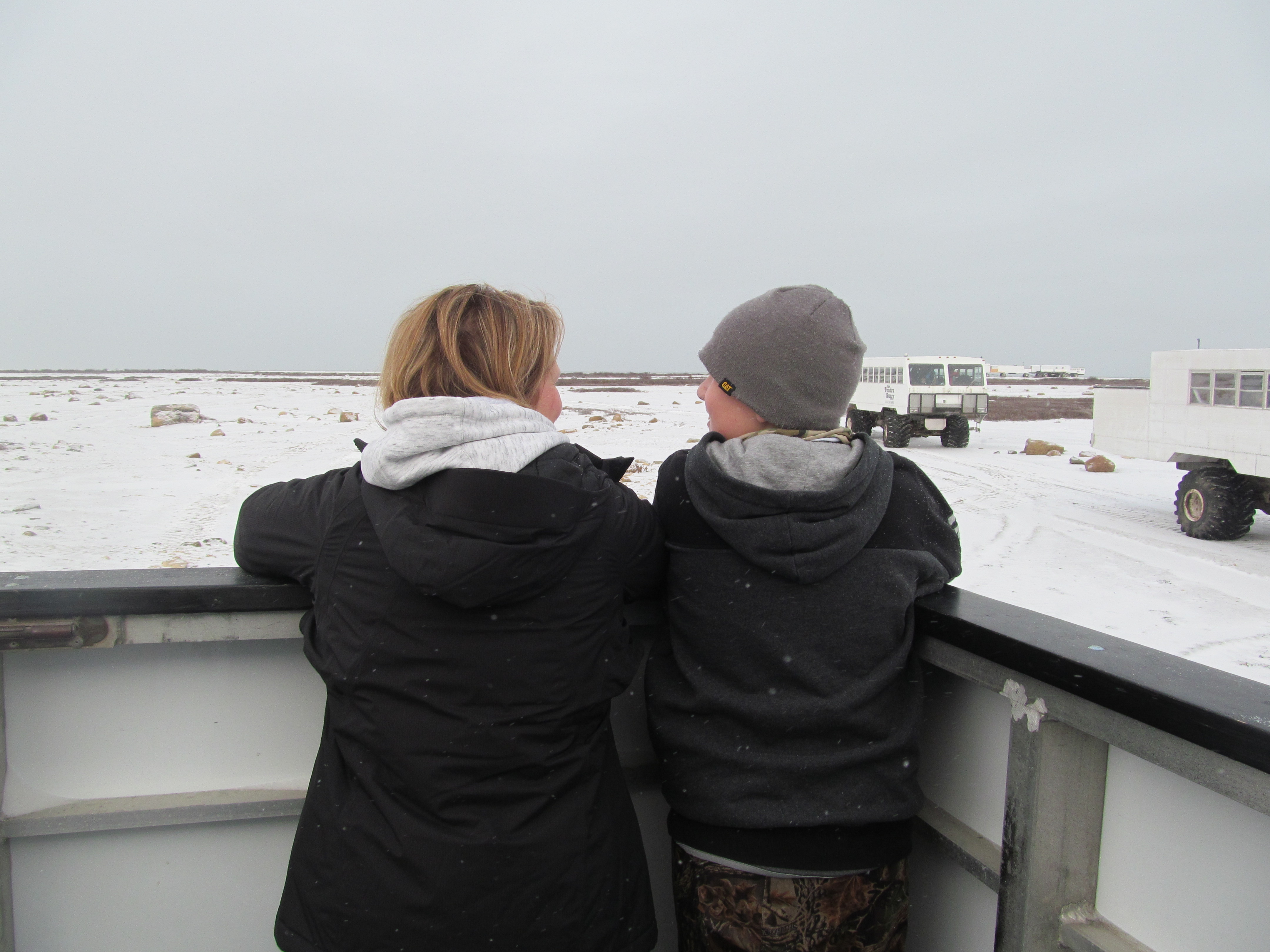 The history of Churchill goes back much farther than the history of Canada itself, there has been evidence found placing humans there 4000 years ago. It is believed that this area was a seasonal hunting ground. In the early 17th century Henry Hudson was the first European to explore the bay, followed by the Danish explorer Jens Munck who was looking for a northern passage to the Orient. His 2 ships, each with a large crew, were forced to winter in Churchill when the bay froze over and only Munck and 2 crew members were alive to sail back home in the spring. The Hudson’s Bay Co. is the oldest commercial corporation in the world and its headquarters were set up at York Factory about 250 km southeast of Churchill. In 1717, a fort was established in the bay by the Hudson’s Bay Company who named it Fort Churchill. Fort Prince of Whales followed in 1731 on the other side of the Churchill River. The fort took 40 years to build and was overtaken by the French shortly after completion. The Hudson’s Bay Co. reclaimed fort Prince of Whales the next year, the climate was harsh and it was hard for any country to maintain troops this far North. In 1931 the building of the port began and the town of Churchill grew. In 1942 Fort Churchill the base was established by the United States Air Force near the original Fort Churchill, about 10 km outside of the existing town. This was part of a proposed overseas route to support allied forces in Europe. It became a training and experimental center after World War II and closed in 1980 (after assumedly the military decided the climate was to cold and no one was going to bother attacking our continent from the North anyway). The town is now known for its wildlife and is coined “The Polar Bear Capital of the World”.  Because the ice forms on the bay before anywhere else on the coast the bears congregate here waiting to get out on the sea ice to hunt seals. For about 6 weeks a year polar bears are the highlight of the tourism industry to Churchill. Because there are not roads this far North we had the pleasure of riding the train 36 hours to get to here from Canora, Saskatchewan. The kids enjoyed the time spent with their friends and after weeks of feeding our harvest crew, I enjoyed eating in the dining car!