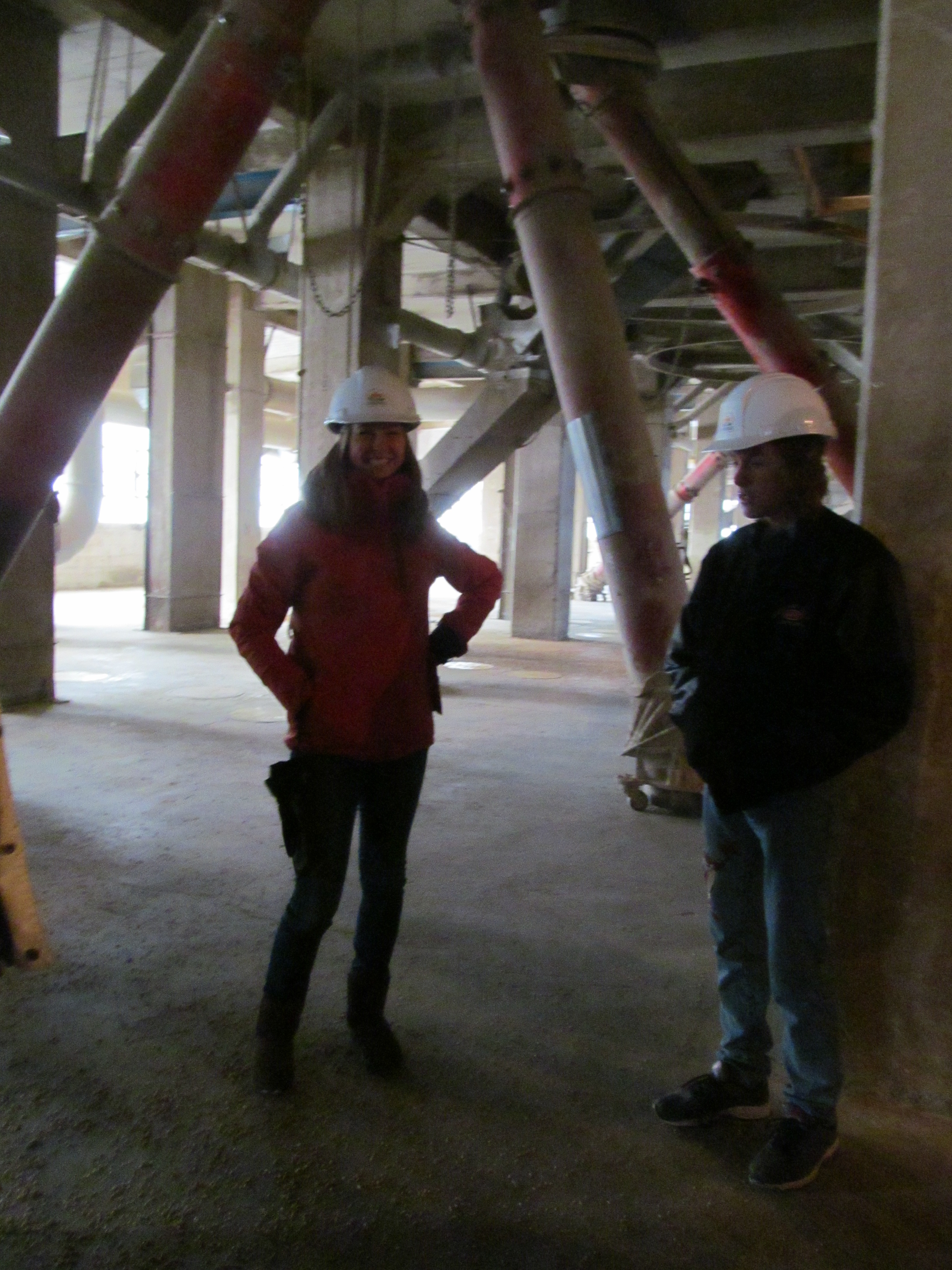 Here I am checking out the system for filling the different bins, the holes on the floor are all numbered.  Brayden is checking out the view of the bay.