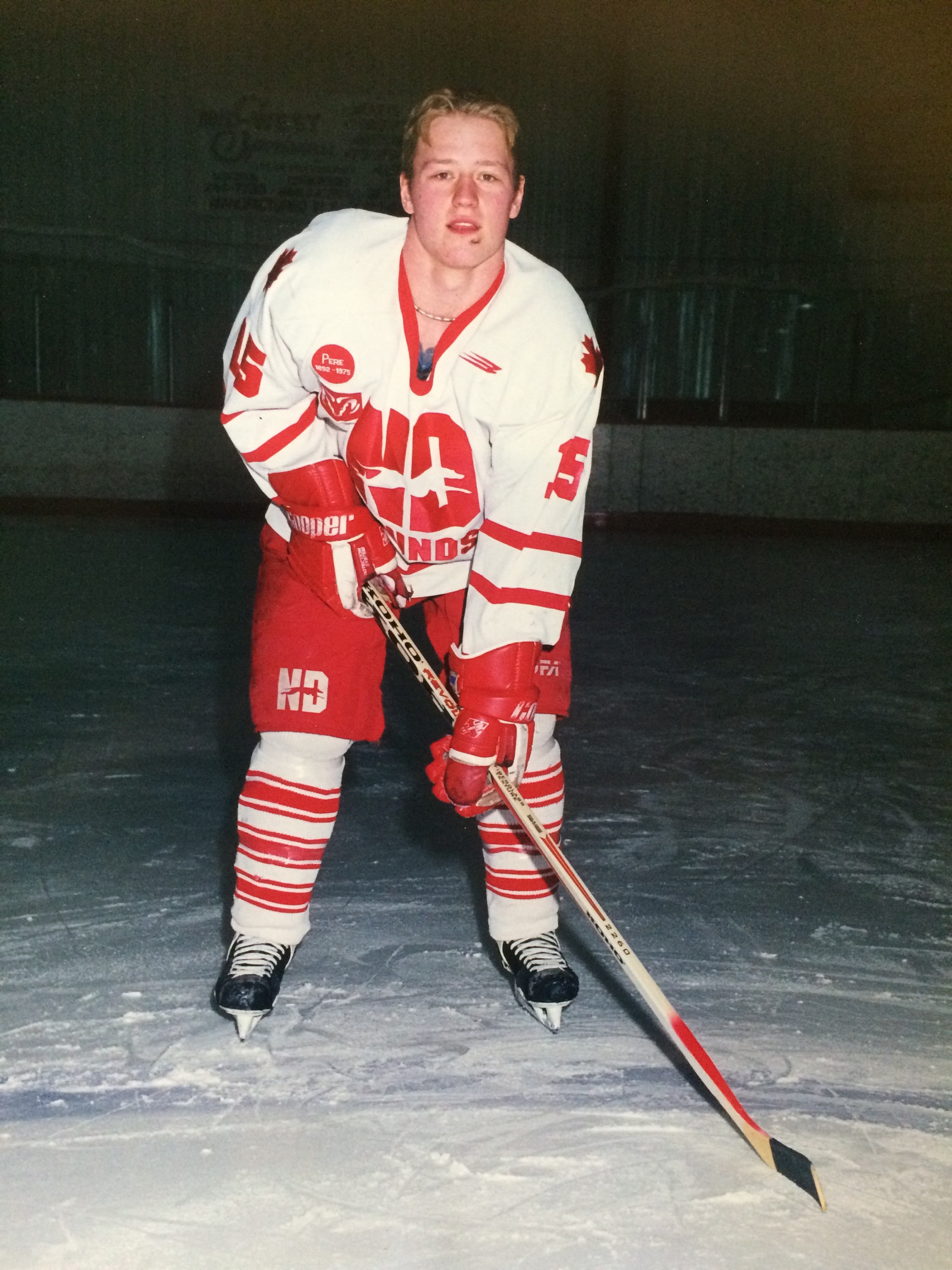 Shain with the Weyburn Red Wings. Shain has also played on numerous teams including Tisdale, Naicam, and Watson AA, The Assinibioa Southern Rebels PJHL, and Williston State Tetons.