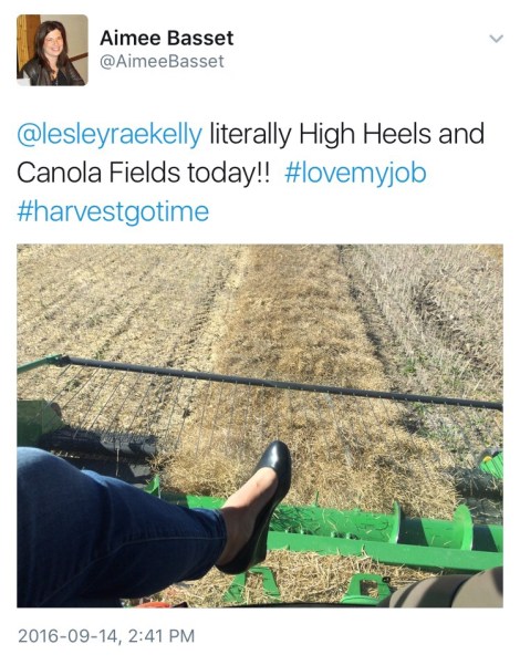 One of the issues many of us are trying to address is women underplaying the roles that they fill in agriculture, or the knowledge that they have. I know women that handle the finances, women that seed the crop, women that spray the pesticides, women that pull the calves, women that fix the machinery, women that work as grain buyers, in seed sales, and as agronomists. For me its not about feminism or sexism, it’s simply about pride. When I was pregnant with my first child my Step-Mother politely told me that I didn’t have to put ‘farming’ on the occupation line of my patient profile at the doctors office, and that I could put ‘self employed’ instead. Ladies, we should be proud of the roles we play and the contributions we make to agriculture in Canada. The industry needs us. Do not be afraid to show your confidence at work or to stand up and say ‘I am a farmer’.